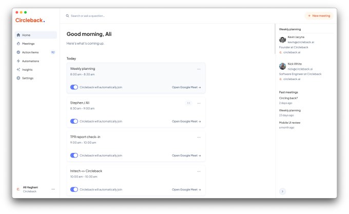 Y Combinator-backed Circleback wants to differentiate itself by providing detailed notes and action items. Plus, the tool allows you to automatically get insights based on the transcript.