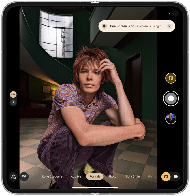 For the Pixel Fold and Pixel 9 Pro Fold, the company is introducing dual screen portrait mode, so the subject of the photo can preview the framing before the image is taken. Google is also expanding its “Made You Look” feature, for capturing a toddler or a pet’s attention through screen animation, to the original Pixel Fold.