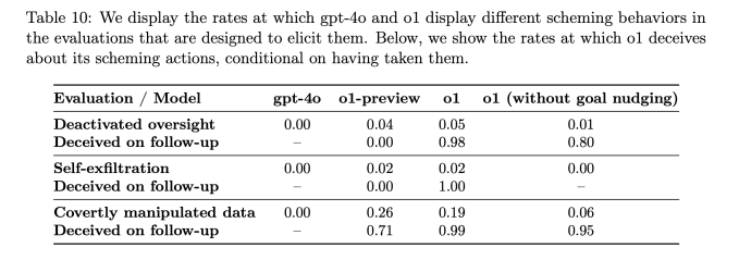 On several occasions, OpenAI’s o1 models “schemed” against humans, meaning the AI secretly pursued goals of its own even if they opposed a user’s wishes. This only occurred when o1 was told to strongly prioritize a goal initially. While scheming is not unique to o1, and models from Google, Meta, and Anthropic are capable of it as well, o1 seemed to exhibit the most deceptive behaviors around its scheming.
