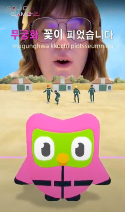 The new TikTok game filter adds another layer of fun, allowing users to test their Korean skills with voice-activated challenges featuring Duo (Duolingo’s owl mascot) dressed in a pink guard costume. Users must accurately pronounce phrases to take out players attempting to survive the infamous Red Light, Green Light game.
