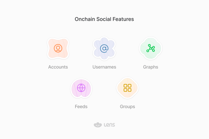 Lens is defining a handful of “social primitives” as the core characteristics of the protocol, namely accounts, usernames, graphs, feeds, and groups. Each user account can create multiple usernames (across multiple apps) and start following other users to build multiple graphs. They can also join groups.