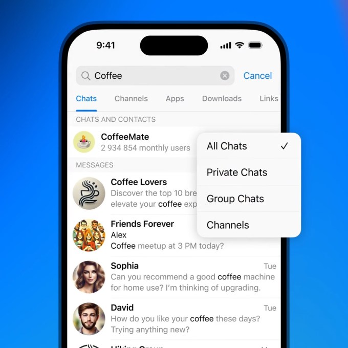 The company has also rolled out an emoji reaction feature for service messages, such as someone joining a group, and new search filters for private chats, group chats, and channels.
