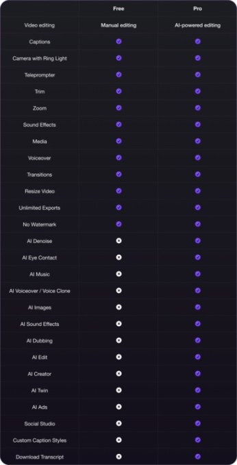 The free tier will include basic video editing tools with features like adding subtitles and a teleprompter for recording, voiceovers, and more. The company is putting all its AI features, such as AI avatars, editing, and social studio suite, in its paid tier.