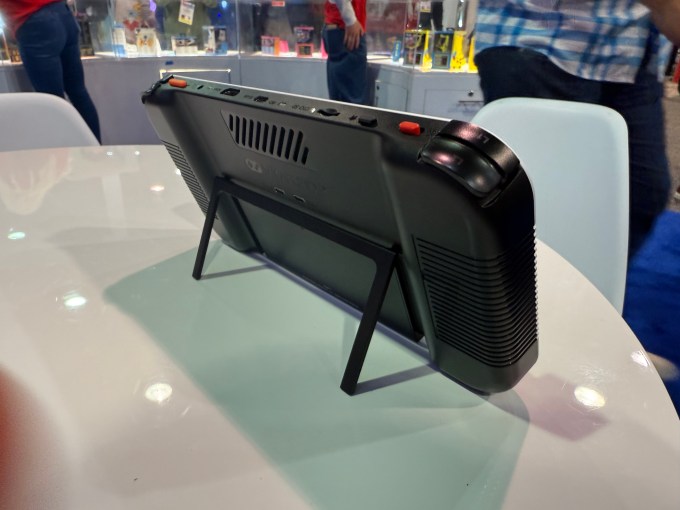 A light system built into the handheld will automatically illuminate the controller set associated with the next game up. The handheld also has an HMDI out port on top, so it can be used to control games beamed to a TV, like a Nintendo Switch.
