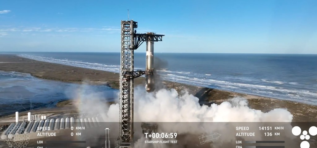 The company pulled off the first booster “catch” — which involves articulated arms on the launch tower snatching the rocket stage out of the air as it uses rockets to slow its descent — in October 2024. A second attempt to catch the booster in November was called off due to a communication problem.