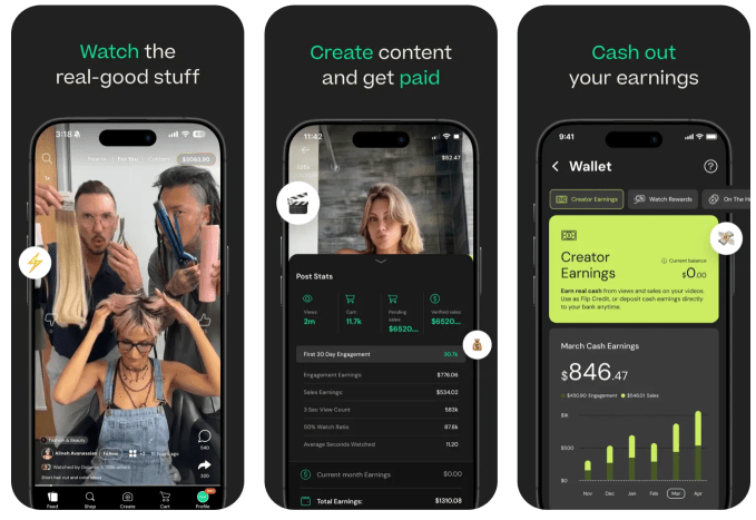 Flip is a shopping-focused short-form video app that could be a great platform for people who are fans of TikTok’s ecommerce offerings like TikTok Shop. The app lets users create and monetize their own product reviews, and viewers can purchase the products they see in videos directly within the app.