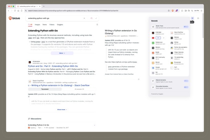 “Rerank enables users to easily adjust search results according to their preferences, explicitly, while being in full control. No opaque personalization is done by unknown algorithms, as Rerank puts users in charge of their search experience,” Brave’s VP for Search, Arjaldo Karaj, said in a statement.