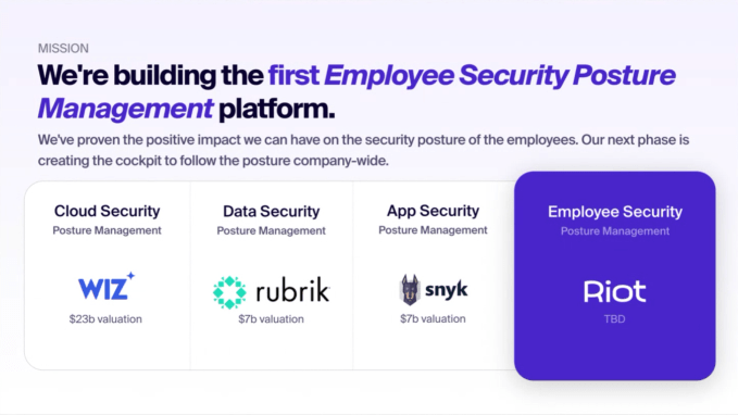 Riot calls its next product an Employee Security Posture Management platform. It’s going to become a central cockpit to manage security at the employee’s level. While there are many Posture Management solutions, Riot believes employees have been neglected for too long.