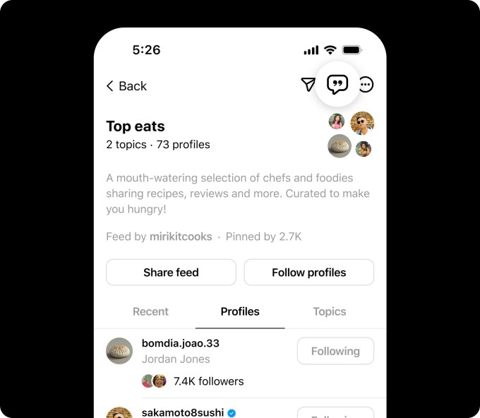 To use Threads’ custom feeds, you’ll first search for a topic to see the latest posts, then tap on the three-dot menu and choose “Create New Feed.” You can also customize feeds by adding specific user profiles to a given feed by tapping on the three-dot icon above a user’s profile photo and then adding them to the feed of your choice.