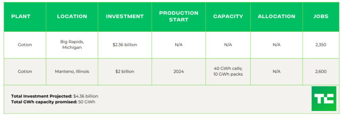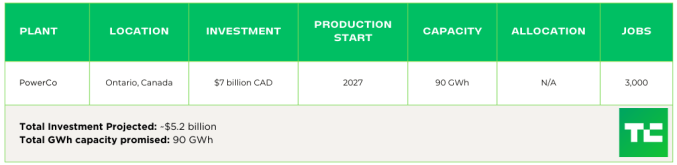 The investment into producing batteries in the U.S. and Canada changes regularly, so we’ve started tracking these promises.