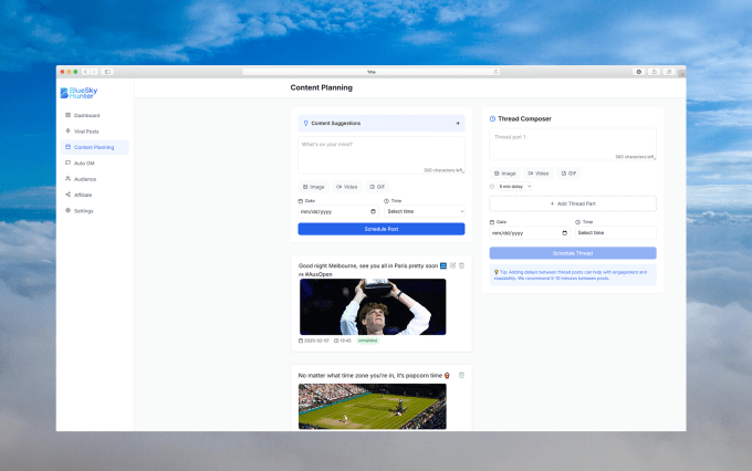 A new startup is addressing the need for an all-in-one toolset built for people who want to grow, manage, and track their Bluesky presence and following. The subscription service BlueSkyHunter, which launched Friday, introduces an online dashboard that combines access to analytics and other tools to schedule posts and automate DMs (direct messages), alongside other features.