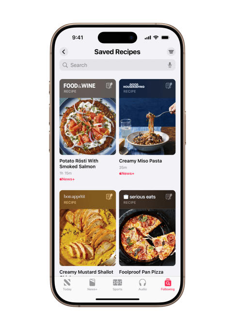 Recipe app developers just got new competition. On Friday, Apple introduced a soon-to-launch feature for Apple News+ subscribers called Apple News+ Food, a new section that will allow users to search, discover, save, and easily cook recipes from dozens of existing News+ publishing partners.