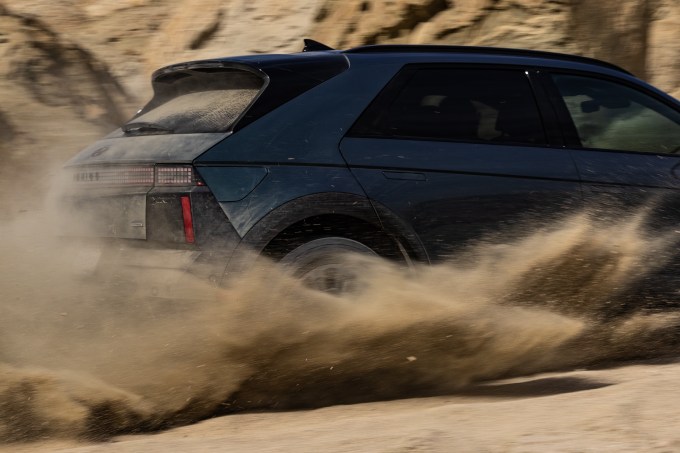 Hyundai let me loose on a fun dirt loop and I found that the car has enough playfulness in it to induce a grin. Sand mode doesn’t turn the traction control all the way off — you have to manually push the traction control button to do that. It does adjust the brake regen properties so the vehicle doesn’t automatically start to slow down when you lift. It also splits the torque 50/50 for optimal traction.