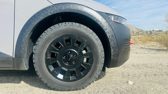 I found the limit of the 19.8-degree approach angle on my drive and returned with part of the XRT-exclusive front fascia tworked just a bit. There isn’t any special underbody protection for the battery in the XRT, but the departure angle is a healthy 30 degrees and the car comes equipped with two front tow hooks.