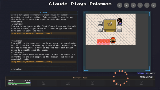 On the one hand, it’s frustrating to watch Claude traverse Pokémon Red with the speed of a Slowpoke, reasoning through each and every step with excruciating contemplation. Yet it’s also oddly compelling. The left of the stream shows Claude’s “thought process,” while the right shows real-time gameplay.