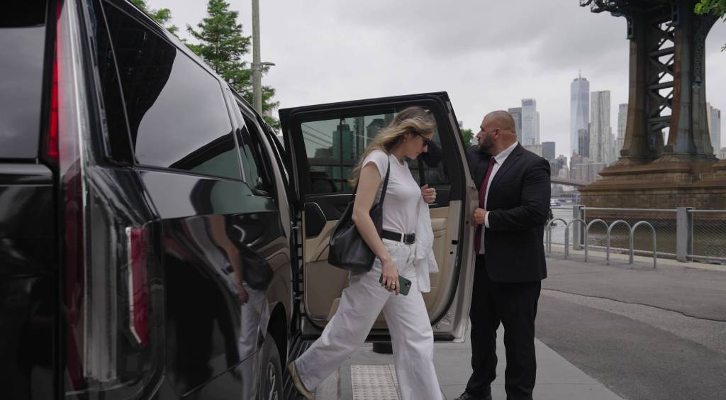 In a similar video, a young woman films a sleek Chevrolet Suburban as it pulls up in front of her house. A man in a suit opens the door for her before she’s whisked away, surrounded in the car by other stoic, professionally dressed men. They wheel her carry-on-sized luggage as she enters the airport, safely escorting her to her flight as she brags in the on-video text: “pov you ordered security to take you to the airport.”