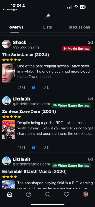 Still in open beta on iOS, Popsky is designed to be a place where you can discover and discuss your favorite TV shows, movies, books, and video games. Also built on the AT Protocol, you can mark items as in progress or completed (or watched), manage spoilers, import data from Letterboxd, and more, with reviews and discussions synced back to Bluesky’s social network.