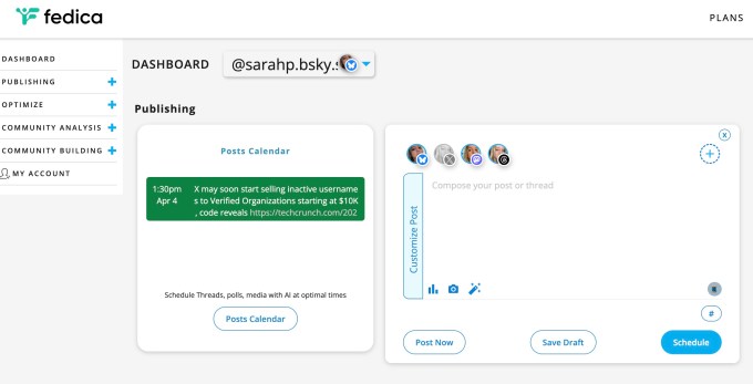 Fedica offers an online dashboard that allows you to compose and schedule posts across social networks, including Bluesky, Threads, X, Mastodon, and Pixelfed, among others. It also supports more traditional social apps like Facebook, Instagram, TikTok, Pinterest, and YouTube. Included in its plans are a variety of features for social listening, tools for tracking hashtags, keywords, and post reach, as well as those for follower analysis.