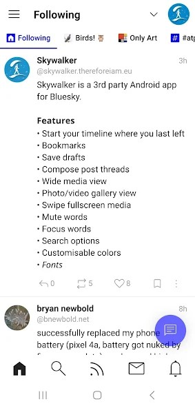 The Skywalker app brings a third-party Bluesky experience to Android users, which adds a handful of in-demand features like bookmarks and saving drafts.