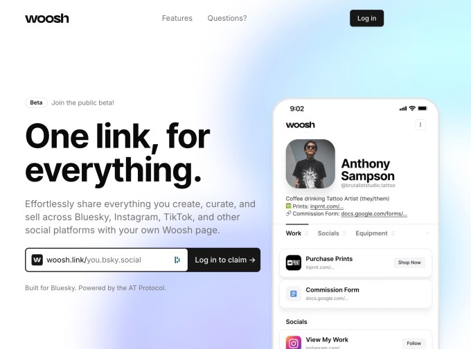 A project built by the team at Federation Studio, Whoosh is building the Linktree for the open social web. The service allows users to share and showcase their online presence in one place, which can include everything from their open social profiles on Bluesky to those on larger platforms like TikTok. However, all the data created on Woosh is saved to your Bluesky or AT Protocol user account, which means you could publish your own App View to render your page the way you want, or use other services to do so in the future.