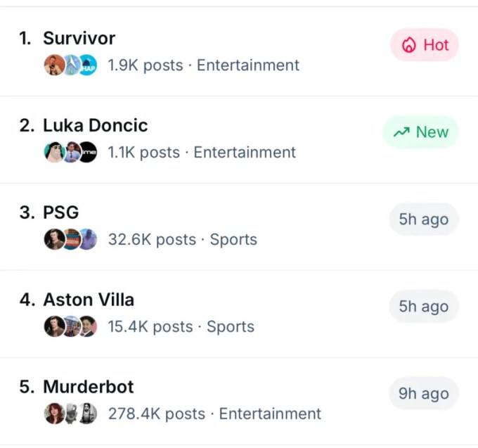 For instance, some of the trends today are linked to timely events, like Trump’s tariffs and their impact, while others point to popular communities on Bluesky, like the readers on BookSky. The trends are also marked with labels like “New” or “Hot” or how long ago they began trending, like “5h ago.”