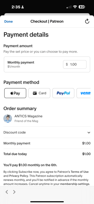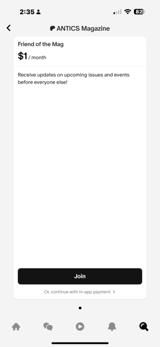 The option to use Apple’s own in-app purchases method, meanwhile, is shown only in very small text below the larger, bold “Join” button. This change will likely direct more customers to pay via Patreon’s website instead of through Apple’s in-app purchases.