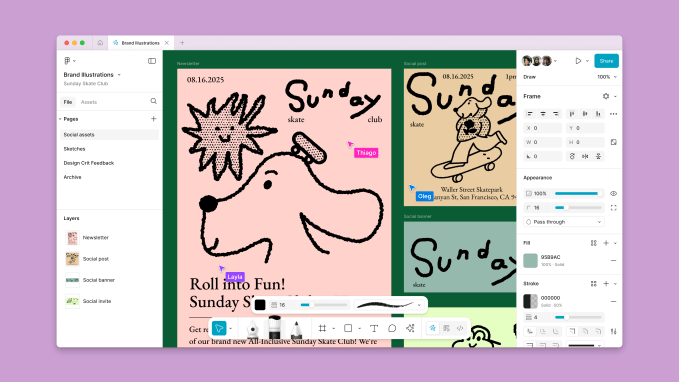 Design company Figma today announced multiple features, including AI-powered site and web app creation, a way for marketers to create assets in bulk, and a new drawing tool. With this launch, the company is taking on other creative solutions such as Canva and Adobe, along with AI-powered website and prototype creators such as WordPress, Wix, Hostinger, and Replit.