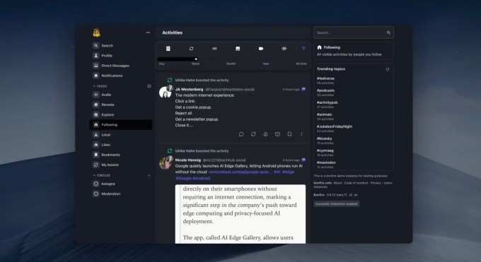 Bonfire Social, a new framework for building communities on the open social web, launched on Thursday during the FediForum online conference. While Bonfire Social is a federated app, meaning it’s powered by the same underlying protocol as Mastodon (ActivityPub), it’s designed to be more modular and more customizable. That means communities on Bonfire have more control over how the app functions, which features and defaults are in place, and what their own roadmap and priorities will include.