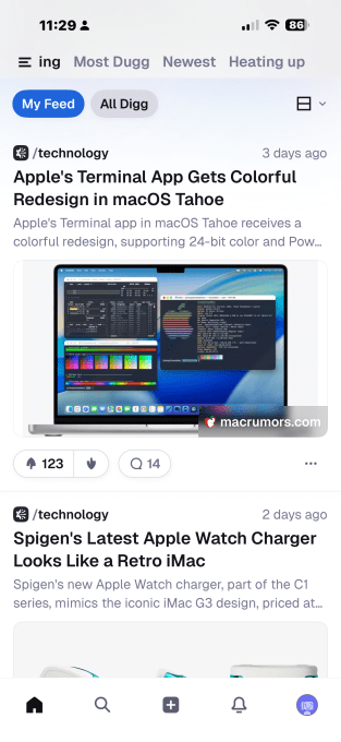 Similar to Reddit, Digg offers a selection of feeds that allow you to view the site’s content in different ways. There are feeds to see the site’s most popular content (Most Dugg), Newest, Trending, and content that’s “Heating up.” These filters can be used across either All of Digg or just your own Feed, which is based on the communities you follow.