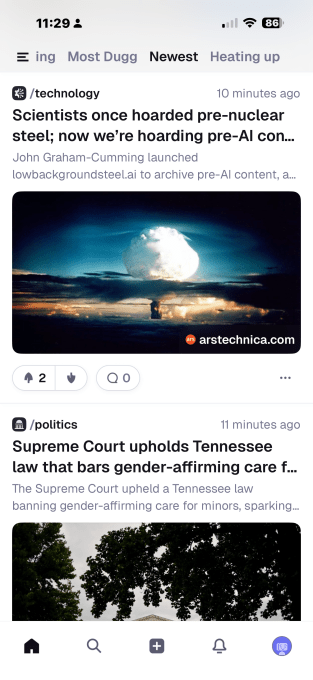 Beneath posts, Digg is leveraging AI to summarize the article’s content. This news summarization trend has been popularized in other apps like Artifact, which sold to Yahoo, and modern-day news readers like Particle. However, AI-based news summaries can be hit or miss, which is why some publishers have been wary of implementing them on their own sites.