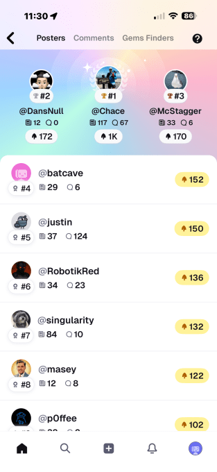 There are also leaderboards in the mobile app that highlight the top daily posts, comments, and Gem-finders, though Digg says it’s responding to user feedback and has been dialing back gamification elements on the desktop.