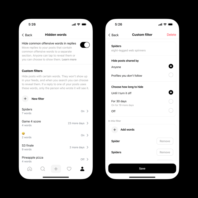 Previously, Hidden Words was tied to Instagram, so the filters that you entered would be applied to content on both platforms. Now you can create a separate list of Hidden Words on Threads to further personalize the content that you see on the platform without impacting what you see on Instagram.