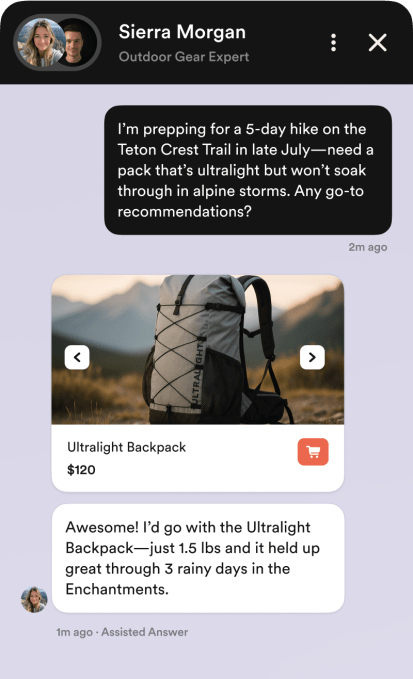 When a user visits a site that uses Remark, the startup’s tool generates a set of dynamic questions that can drive the user’s purchasing decision. If a user is looking for pots and pans, the site could ask what kind of stovetop they have, or if they use diesel, induction, or gas. When the user clicks on one of these questions, a chat interface opens where they’re matched with an expert who can offer advice about buying an item.