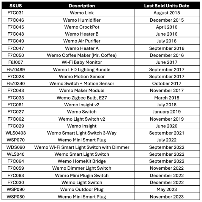 Belkin provided a full list of affected devices, which includes a wide range of smart home products spanning multiple categories.