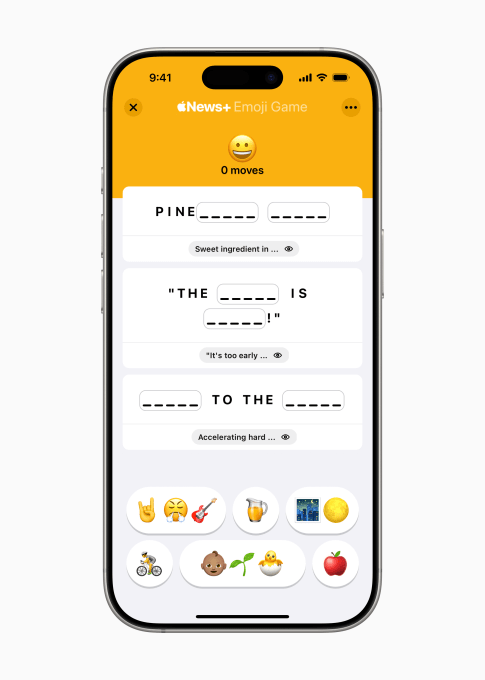 Apple is introducing a new reason to upgrade to its subscription news offering, Apple News+: more games. On Thursday, the company announced the addition of the Emoji Game, an original title that will join its other games, including its Crossword puzzle, Crossword Mini, Sudoku, and word game Quartiles, in both the U.S. and Canada in English.