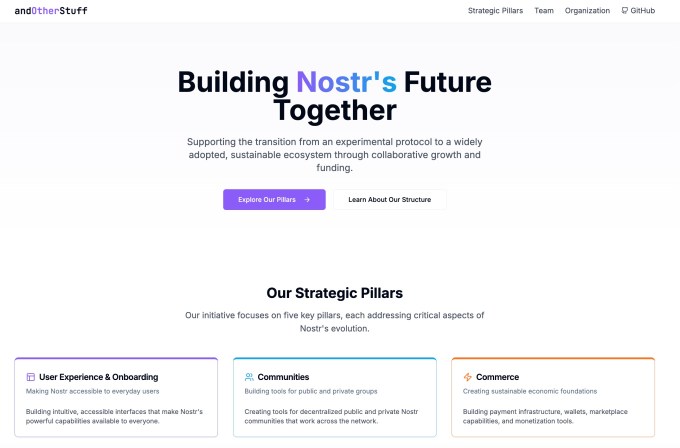 These efforts are funneled through an online collective called “andOtherStuff,” formed in May, whose team includes Dorsey; Twitter’s first employee, Evan Henshaw-Plath; “Calle,” creator of the e-cash platform Cashu; Alex Gleason, former engineering head at Truth Social; and Jeff Gardner, the fourth employee at Intercom.