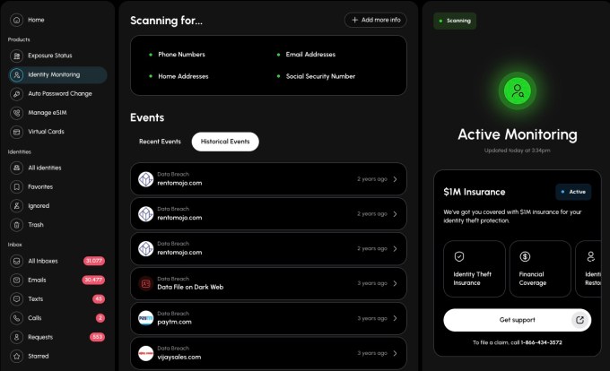 Additionally, the startup is releasing a dark web monitor for personal data. The company observes different sources such as data brokers, breach sites, compromised websites, dark web forums, Discord, and Telegram for leaked user data. The tool searches for names, addresses, Social Security numbers, emails, family members, passports, and driver licenses.