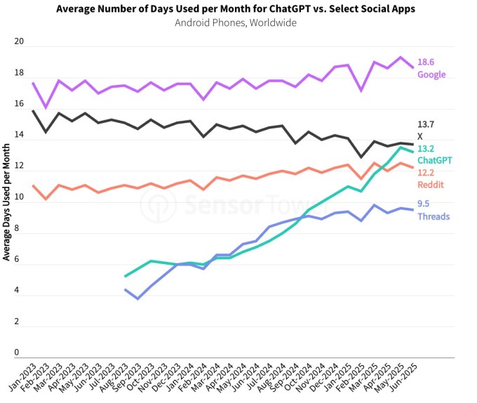 ChatGPT’s stickiness has been impressive. Sensor Tower said that people are using OpenAI’s app as much as X and Reddit. Only Google has a better rate for the average number of days used per month. The report also mentioned that, as compared to last year, ChatGPT’s weekend usage has also improved, signaling that people are relying on the AI-powered chat app beyond work.