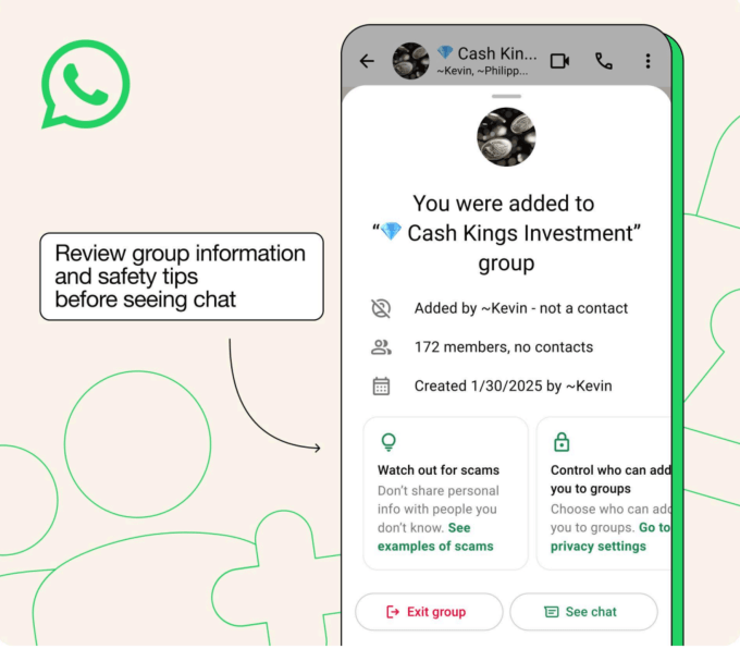 For group chats, WhatsApp is launching a safety overview feature that will be displayed when someone who isn’t in your contact list adds you to a new group that you may not recognize. The safety overview will include key information about the group, alongside tips to stay safe.