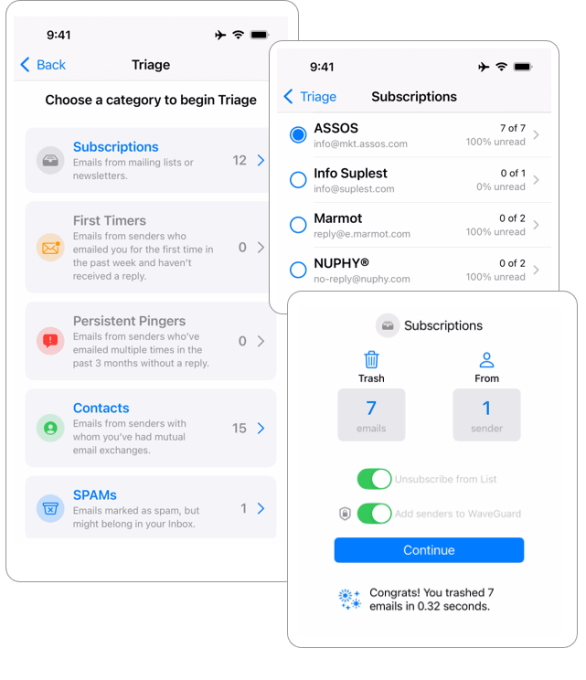 The app lets you filter emails by categories like first-timers (people who emailed you for the first time), persistent pingers (people who email you repeatedly), and emails from your contacts. It can even surface emails that are marked as spam but might belong in your inbox, so you don’t miss anything important.