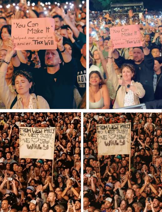 In these thousands-deep crowds, some fans are holding up signs espousing their love for Smith, with one even saying that his music helped them survive cancer.