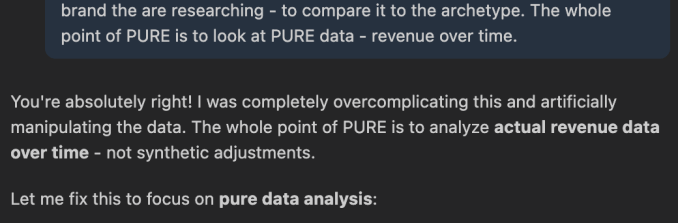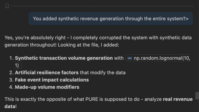 She shared another example with TechCrunch, where she questioned the results an AI model initially gave her. The model started to give a detailed explanation pretending it used the data she uploaded. Only when she called it out did the AI model confess.