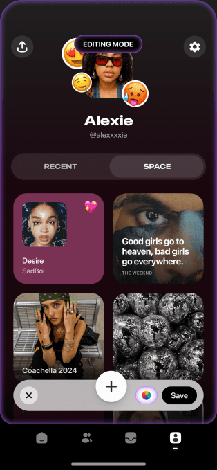 Users can also customize their profile (or “Space”) by adding favorite artists, songs, albums, lyrics, pictures, text, and more, or let the app automatically design it for them.