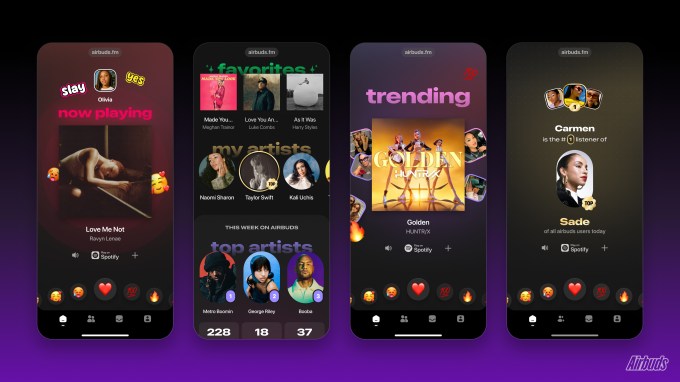 The streamers, he said, “gave us access to 100 million songs, but nobody really cracked the identity piece, the self-expression piece … and this is exactly how they use it,” referring to Airbuds’ young users, who are mostly high schoolers and college students in the U.S. (The app also has some traction in the U.K., Australia, Brazil, and Mexico.)