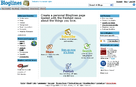 Bloglines is a free, web based RSS reader. It’s the most popular, with NewsGator/Feeddemon a close second by number of users. If you are new to RSS, Bloglines is a very good place to start (for a complete list of web-based RSS readers, see here).