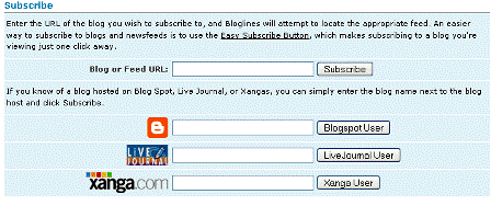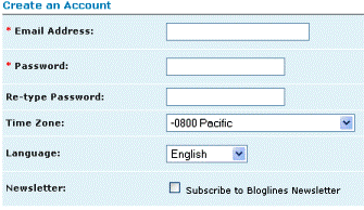 Signing up at Bloglines is very easy. All they ask for is an email address and password: