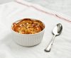 In a deep pan or casserole dish (or individual dishes if you wish), layer half of the bread and sprinkle with ⅓ of the cheese. Add the remaining bread and sprinkle with ⅓ of the cheese. Add the soup and top with remaining ⅓ cheese.