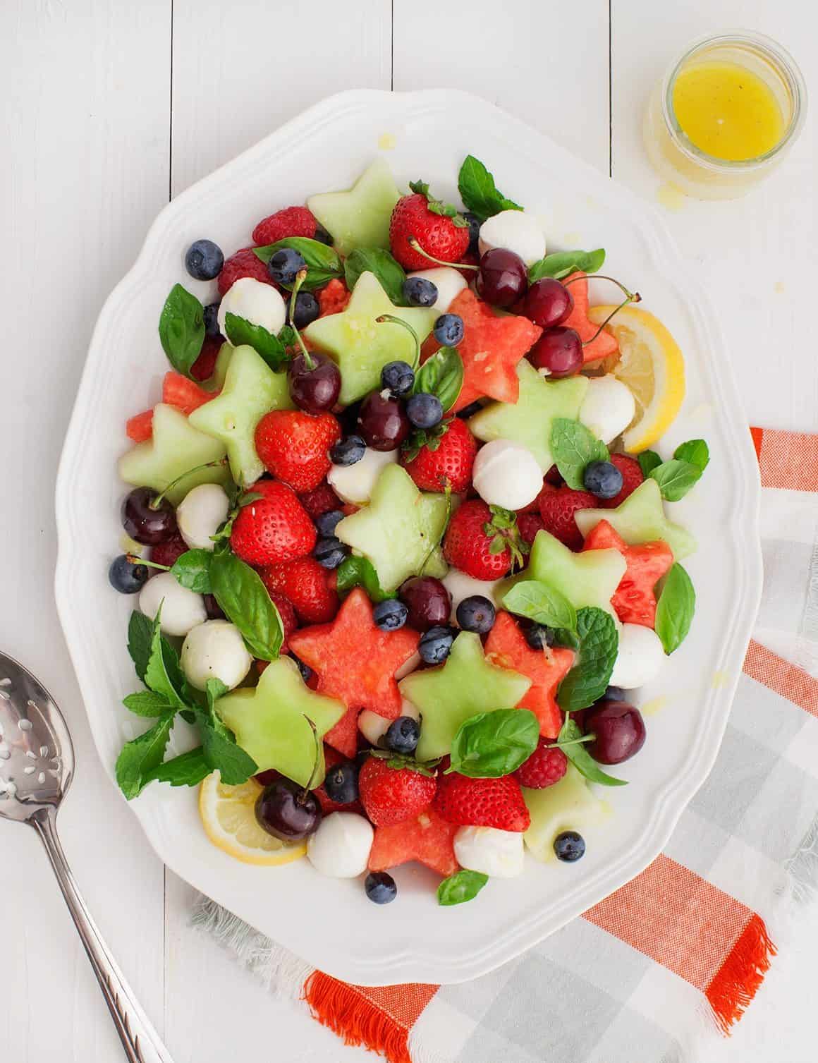 I love serving this summery fruit salad for potlucks or celebrations. A zingy lemon ginger dressing on top makes it extra bright and festive!