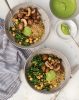 Assemble the bowls with the cooked quinoa, kale, mushrooms, chickpeas, pistachios, red pepper flakes and generous scoops of the sauce. Season to taste.