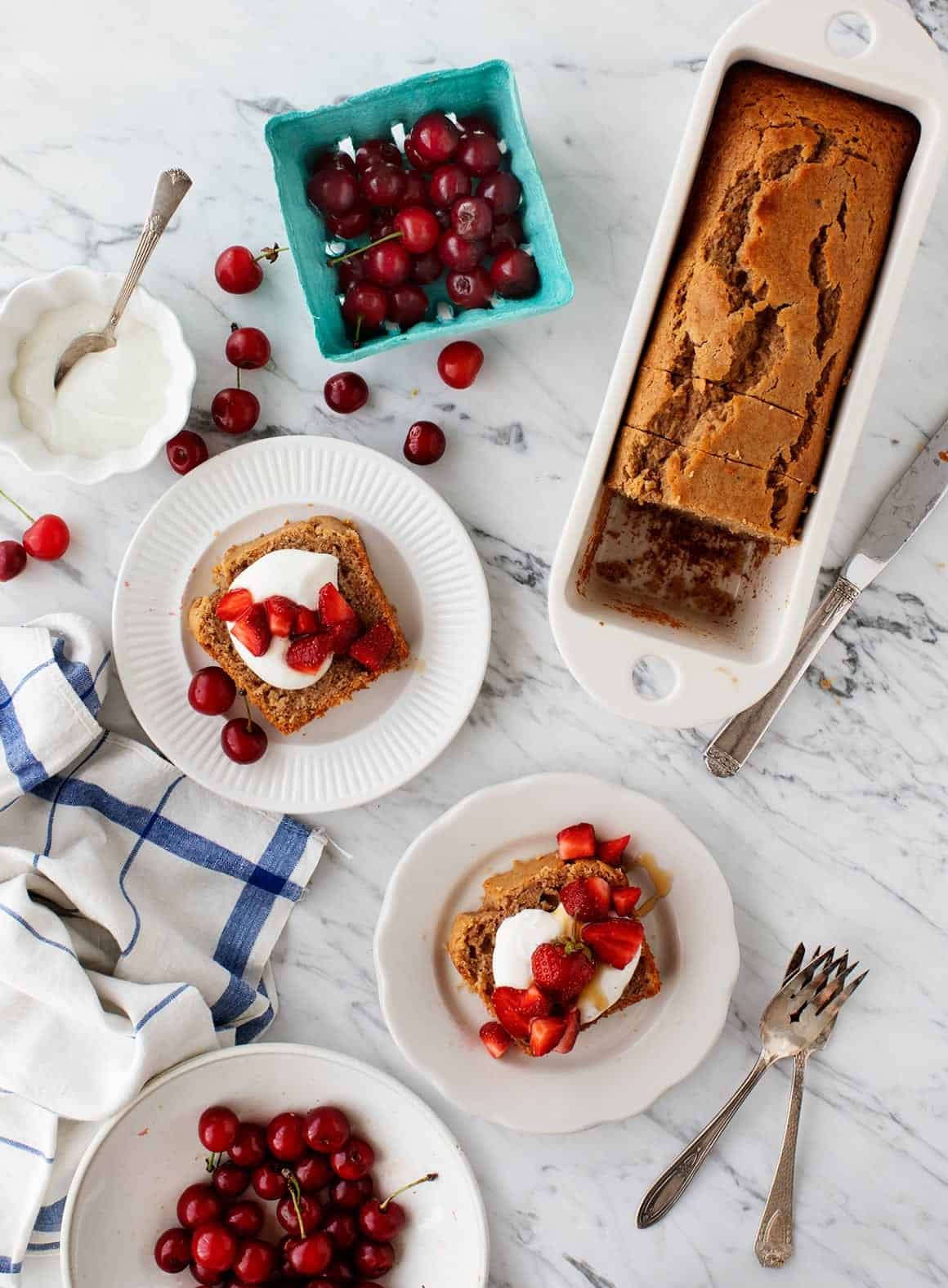 This moist, light yogurt pound cake recipe is a divine afternoon treat or summer dessert. Serve it with dollops of yogurt and your favorite seasonal fresh fruit.